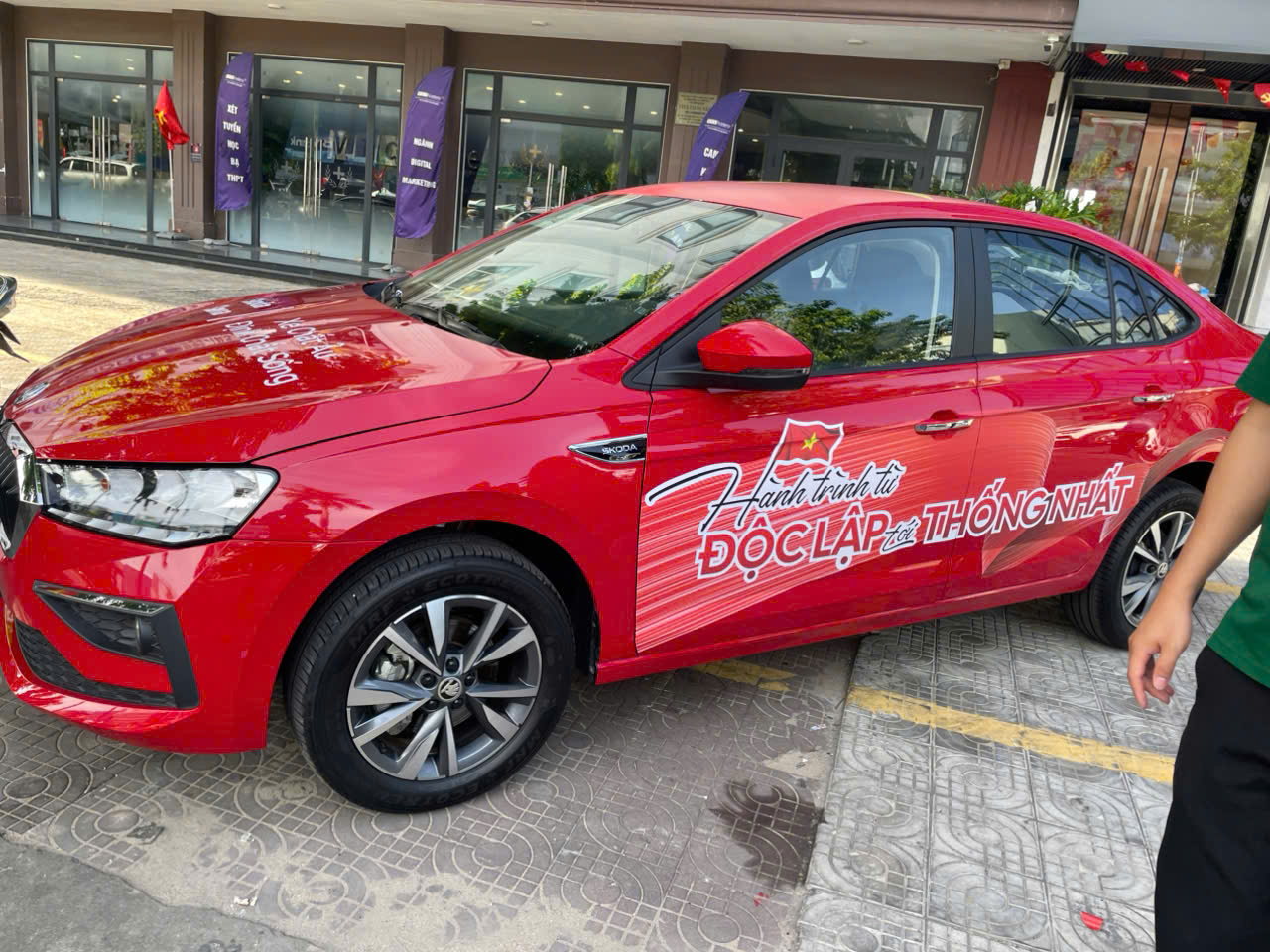 Mừng quốc khánh ,tiếp tục dán quảng cáo trên xe Skoda Đà Nẵng